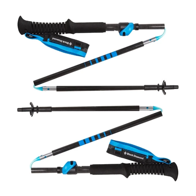 Combining ultralight carbon construction with Z-Pole technology and FlickLock adjustability, the Distance Carbon FLZ is now stiffer and more durable, making it the ultimate pole in adjustable, folding performance. The Black Diamond Distance Carbon FLZ is our premium pole for fully adjustable, folding performance. Now with improved joint support (making them 30% stiffer) and greater durability thanks to added reinforcements around the locking mechanism and upper shaft, this highly adaptable trekking pole delivers 100% carbon construction, FlickLock adjustability and a three-section foldable shaft. Combined with interchangeable, non-scarring Tech Tips and a lightweight EVA foam grip, your grasp and traction will be solid.