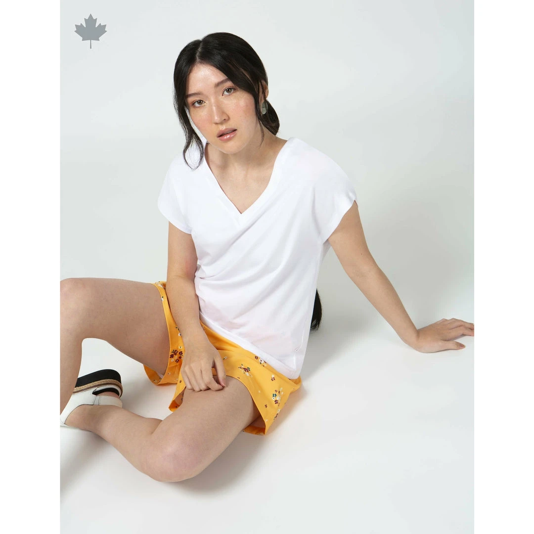 Short sleeves top with V-neck made with organic cotton and TENCEL™ Lyocell, created using an environmentally responsible closed loop process, which transforms wood pulp into fibers. Straight fit top with dolman sleeves and rib at neckline.