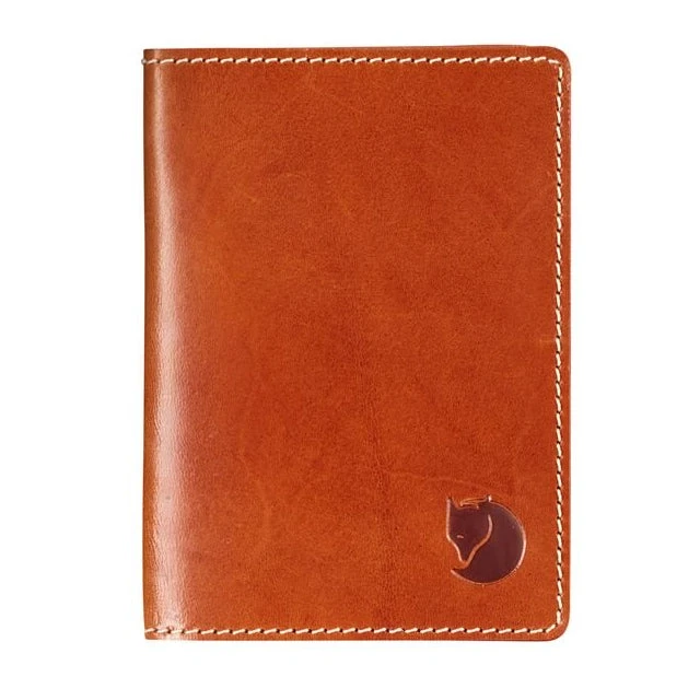 Timeless leather passport cover that will protect your most important travel documents and keep them together. Made from a fantastic, rustic vegetable-tanned leather. The leather has an open grain surface that takes on a lovely sheen with use. Two large compartments for a passport and boarding card and three smaller openings for credit cards or business cards. Fjällräven logo on front. Handmade in our Swedish leather factory.