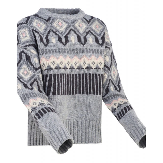 The Kari Traa Molster Knit is a wool-blend women’s pullover with a comfy, casual style and a cropped cut. Dropped shoulders add a relaxed shrug to the chilled-out effect, while the Jacquard knit and blown-up Inca-print pattern on the upper part of this sweater give it a carefree style. There’s a ribbed hem and cuffs to keep out the cold.
