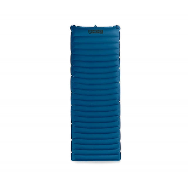 Gently curved, body mapped baffles create cradling support to keep you centered on the pad through the night. Equipped with our proprietary Laylow™ zero-profile, multi-functional, micro-adjustable valve for customizable comfort and fast deflation. Fabric is bluesign® certified and made of 100% post-consumer recycled materials. Durable 30D polyester ripstop conforms to the body and has a great feel. Versatile design is packable, durable, and weight conscious at a competitive price. From the backcountry to your friend’s living room, this pad makes sleep happen. Included Vortex™ pump sack reduces moisture in your pad and makes inflation a breeze. R-values are 1.8 (non-insulated) and 3.3 (insulated with 100% PCR Primaloft), according to the ASTM F3340 standard. Includes a compact stuff sack and repair kit. Protected by the NEMO Lifetime Warranty.