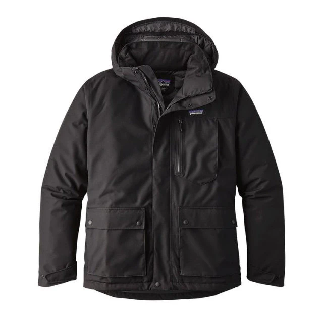 Two top-entry patch pockets have snap closures for security; side-entry handwarmer pockets lined with brushed jersey on the knuckle side for comfort