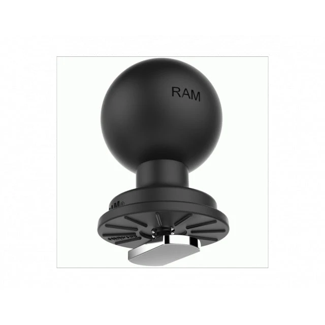 The RAM Track Ball is made up of a C size 1.5″ rubber ball molded to a high strength composite base, a rubber friction washer and a stainless steel T-bolt for sliding into virtually any track system. Simply insert or slide the Track Ball into your track and twist the ball clockwise to tighten in place. Twist counterclockwise to loosen or adjust the ball.