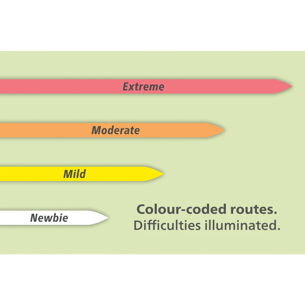 - Colour-coding for difficulty ratings