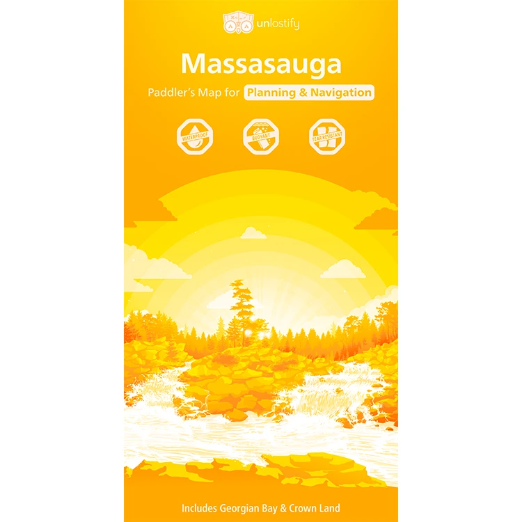 Unlostify maps provide users the benefit of a double-sided map – one for planning and the other for the trip itself. With glow-in-the-dusk ink and colour-coded routes, this map of the Kawartha Highlands is easy to read and helpful for all paddling skill levels.